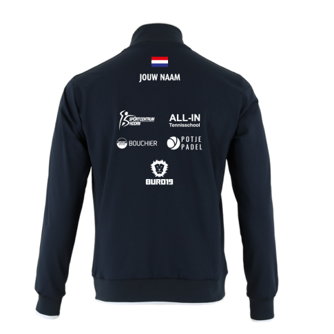 Dit is personaliseerbaar en daarom staat de keuze vrij om dit wel of niet op het shirt dan wel jack terug te laten komen. Mocht de naam gekozen worden komt dit standaard met een Nederlandse vlag boven de naam. Hetgeen is tegen een meerprijs van β¬5,95 te kiezen.